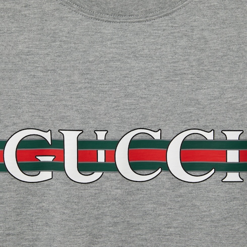グッチのコードは、新シーズンのリラクシングなTシャツやジャージー アイテムでも進化を続けています。このレギュラーフィットのTシャツはコットンジャージーで仕立て、GUCCI ウェブ ストライプ プリントをあしらいました。