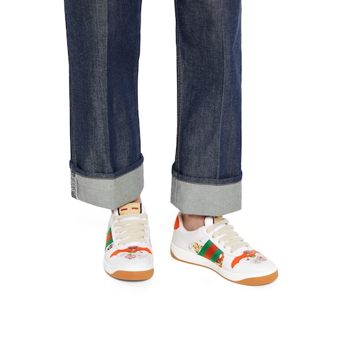 Influenced by classic sneakers from the 1970s, the Screener sneakers is named for the defensive sports move. This variation, in floral printed canvas, features the unique Web stripe on the side, while the vintage Gucci logo complete the style.