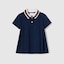 La bande Web issue des archives est omniprésente dans la collection Pre-Fall 2025 pour enfant, dans différentes versions. Les finitions coloris vert et rouge sur les pièces de prêt-à-porter, les chaussures et les accessoires donnent une allure sportive, adaptée à chaque aventure. Cette robe pour bébé confectionnée en jersey de coton épais présente un col polo en maille avec bande Web.