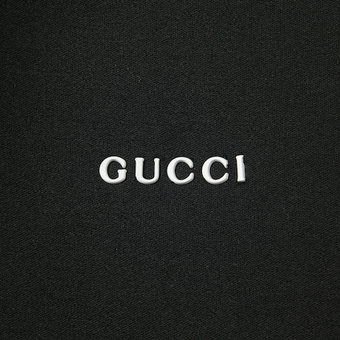 Signature styles have been re-envisioned in unexpected versions, juxtaposed with new details on tops, oversized shirts and leisurewear ensembles. This hooded zip sweatshirt is made from a light cotton double jersey and enriched with a Gucci metal detail.