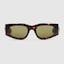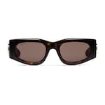 La collezione di occhiali Pre-Fall 2024 combina le silhouette ricercate dei decenni passati aggiungendo il logo per un tocco contemporaneo. Qui, una montatura in acetato tartarugato scuro lucido è abbinata ad aste in acetato a doppio strato e al motivo Incrocio GG.