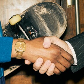 Refined leather straps, gold-hued metal or steel bracelets enhance a streamlined watch inspired by the world of skateboarding.