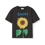 La créatrice et peintre sud-coréenne Naon Jeong crée des motifs à la fois ludiques et nostalgiques inspirés de sa vie quotidienne et de la culture coréenne. Dans le cadre de la collection Cruise 2025 pour enfant, ses imprimés de chats et d’autres motifs ludiques s’associent au nom de la Maison. Ce t-shirt oversize pour enfant arbore un imprimé Maison Gucci et tasses à thé.