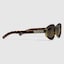 La collection de lunettes Pre-Fall 2024 associe avec succès les silhouettes tant convoitées des décennies passées à un effet logo contemporain. Ici, une monture géométrique injectée couleur écaille de tortue est ornée d’un logo Gucci.