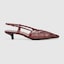 Dieser Damenpumps mit Fersenriemchen fasziniert durch ein Design aus Netzgewebe in Gucci Rosso Ancora Rot mit funkelndem GG Motiv und präsentiert so ein neues Verständnis von Feminität, das sich durch glamouröse Details wie Spitze, Kristalle und transparente Stoffe auszeichnet.