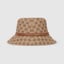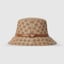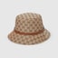 In the Fall Winter 2025 collection, signature GG motif returns in soft shades. Crafted from cotton canvas, this bucket hat showcases the GG canvas with a brown leather trim.