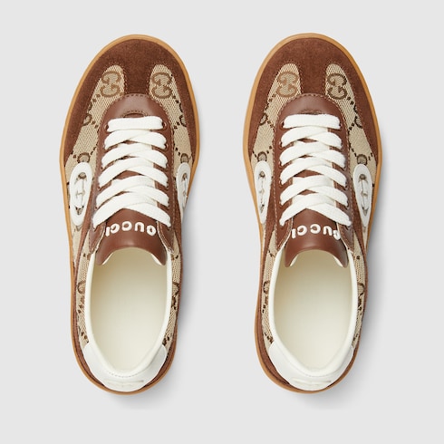 Da delicati ricami a stampe all over, gli emblematici motivi della Maison continuano ad arricchire la selezione bambini Pre-Fall 2025. Queste sneaker per bambini, realizzate in tessuto GG, sono caratterizzate da un logo Incrocio GG con un logo Gucci.