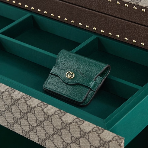 Paying homage to Guccio Gucci’s beginnings as a porter at the London hotel, this trunk combines classic details with emblematic House codes. The design features an all-over GG Supreme cover with multiple drawers. A double lock with a key reveals a folding mirror at the top. Each drawer can be customized to contain jewels and watches, according to customer needs. The design is complete with four retractable wheels.