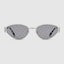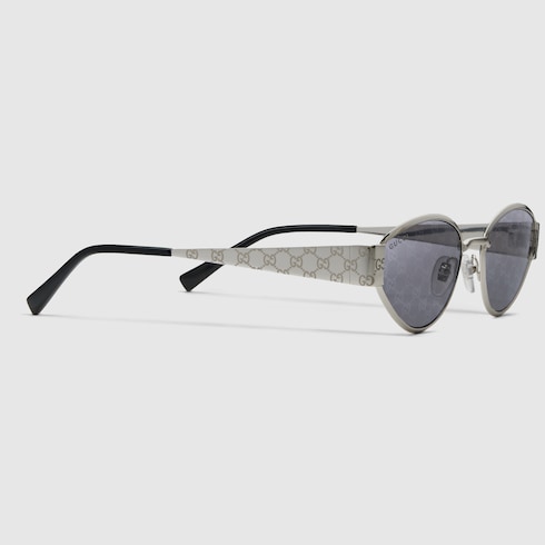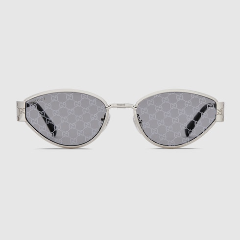 La collezione di occhiali Cruise 2025 combina una silhouette essenziale con elementi esclusivi. Questi occhiali da sole geometrici sono impreziositi da un motivo GG all over su aste e terminali.