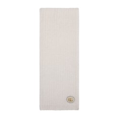 Presented in ivory, this scarf is crafted from rib knit wool cashmere. Originally inspired by a belt buckle from the 1970s, the Double G defines the accessory as a leather patch detail.