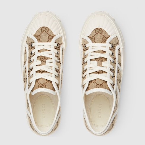 Estas zapatillas de exclusiva lona Original GG fusionan diseño tradicional y estética contemporánea. El llamativo diseño exhibe una suela de goma con la inscripción "Gucci" en relieve para ofrecer un look llamativo y una comodidad excepcional.