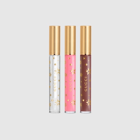 Dieses Geschenkset enthält drei Gucci Gloss à Lèvres Lipgloss mit sofortiger und anhaltend aufpolsternder Wirkung und kristallklarem Finish. Umhüllt mit intensiver Feuchtigkeit und lang anhaltendem Glanz, sehen die Lippen glatter und voller aus. Dank einer intensiven Mischung aus pflegenden und aufpolsternden Inhaltsstoffen versorgt Gucci Gloss à Lèvres die Lippen bis zu 8 Stunden lang mit Feuchtigkeit. Das Geheimnis liegt in der Kombination der Extrakte von Ingwerwurzel und Capsicum. Die feuchtigkeitsspendenden Eigenschaften von Hyaluronsäure werden mit der kühlenden Wirkung von Menthol ergänzt. Die umhüllende Textur und reflektive Polymere sorgen schließlich für ein geglättetes Erscheinungsbild von Lippenlinien und -fältchen.