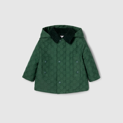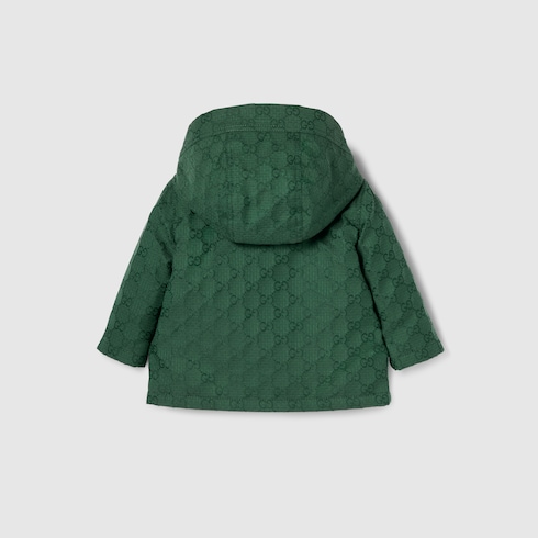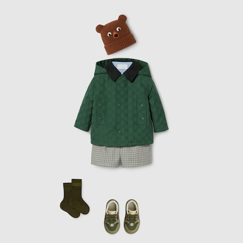 Im Rahmen der Pre-Fall 2025 Kinderkollektion rücken beliebte Motive in den Mittelpunkt, darunter auch charakteristische Logo-Details. Mit ihrem Design aus GG Ripstop-Baumwolle ist diese Kapuzenjacke für Babys eine Hommage an das unverkennbare Monogramm-Logo des Hauses.