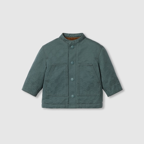 Im Rahmen der Pre-Fall 2025 Kinderkollektion rücken beliebte Motive in den Mittelpunkt, darunter auch charakteristische Logo-Details. Bei dieser Babyjacke aus GG Baumwollgabardine sorgt ein Futter aus flauschigem Stoff für zusätzlichen Komfort.