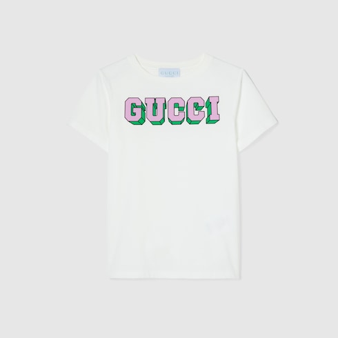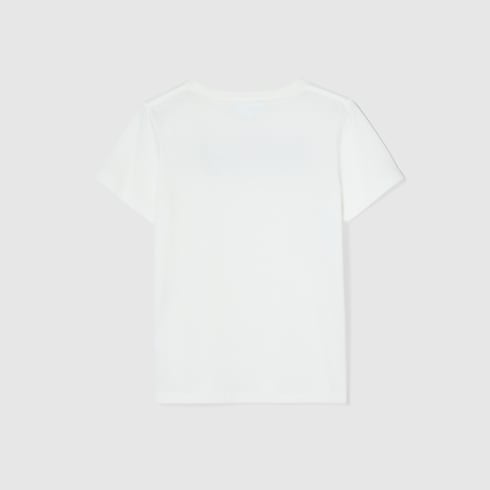 Von dezenten Stickereien bis hin zu durchgehenden Prints: Die Pre-Fall 2025 Auswahl für Kinder ist von charakteristischen Motiven des Hauses geprägt, die auf vielfältige Weise in Szene gesetzt werden. Dieses Kinder-T-Shirt aus Baumwolljersey zeichnet sich durch einen Gucci Print in Brusthöhe aus.