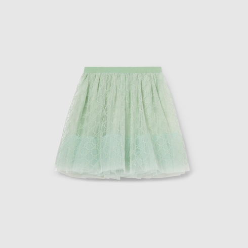 Von dezenten Stickereien bis hin zu durchgehenden Prints: Die Pre-Fall 2025 Auswahl für Kinder ist von charakteristischen Motiven des Hauses geprägt, die auf vielfältige Weise in Szene gesetzt werden. Dieser Kinderrock besticht durch ein Design aus GG Tüll. Ein elastischer Bund und ein Futter aus Seidenmischung sorgen für ein komfortables Tragegefühl.