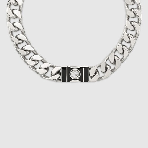 Die Modeschmuckkollektion des Hauses setzt auch weiterhin auf symbolträchtige Motive, die durch edle Materialien, aufwendige Handwerkskunst und elegante Details neu interpretiert werden – so auch bei dieser Gucci Interlocking Gliederhalskette mit einem schwarzen Emailledetail am Schnallenverschluss.