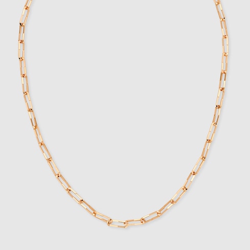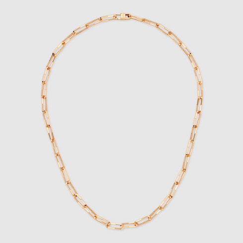 Die Gucci Link to Love Kollektion setzt sich auf zeitgemäße Weise mit dem Thema Romantik auseinander und bedient sich dabei neuer Liebessymbole. Diese Halskette mit geometrischer Gliederkette in facettiertem, 18-karätigem Roségold bietet eine Vielzahl an Trage- und Kombinationsmöglichkeiten.