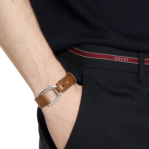 Inspiriert vom Design eines Steigbügels lässt die neue Gucci Staffa Linie das Reitsporterbe des Hauses nahtlos in die Gegenwart übergehen. Gliederhalsketten greifen das Motiv in Form von Anhängern mit Ledereinsatz auf, während das Steigbügeldetail bei Lederarmbändern als Teil des verstellbaren Schnallenverschlusses in Erscheinung tritt.
