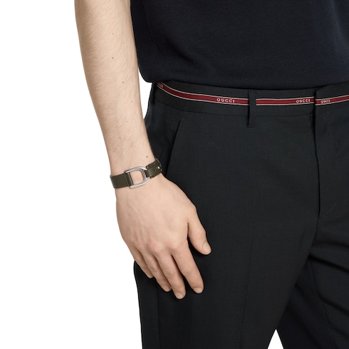 Inspiriert vom Design eines Steigbügels lässt die neue Gucci Staffa Linie das Reitsporterbe des Hauses nahtlos in die Gegenwart übergehen. Gliederhalsketten greifen das Motiv in Form von Anhängern mit Ledereinsatz auf, während das Steigbügeldetail bei Lederarmbändern als Teil des verstellbaren Schnallenverschlusses in Erscheinung tritt.