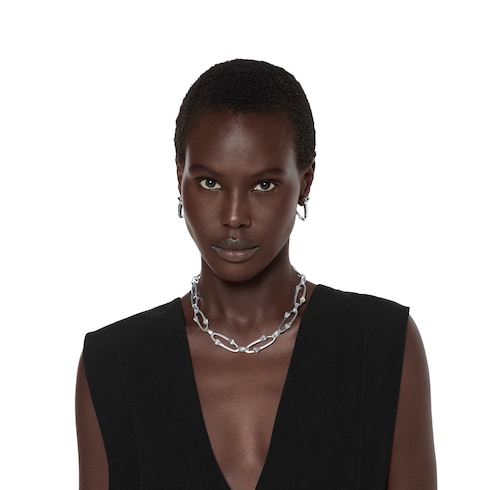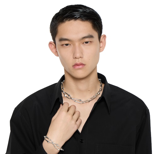 Inspiriert von Hufeisenbeschlägen, bringt die neue Gucci Chiodo Linie das Reitsporterbe des Hauses stilvoll in die Gegenwart. Verschlungene Glieder in verschiedenen Variationen vereinen sich zu Choker-Halsketten und Armbändern, die mit dem Gucci Logo graviert sind.