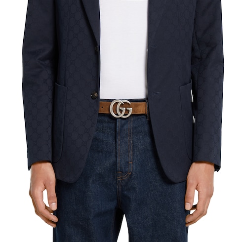 Die aus weichem Wildleder gefertigten GG Marmont Gürtel zeichnen sich durch ihre besondere Struktur aus und können für einen abgestimmten Look mit Schuhen aus dem gleichen Material kombiniert werden. Dieser schmale Gürtel besteht aus weichem, leichtem Wildleder und wird von einer Doppel G Schnalle akzentuiert.