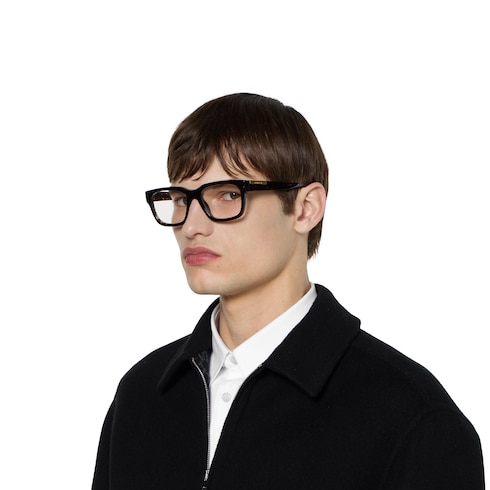 - Bügel aus glänzendem Azetat in dunkelbrauner Schildpatt-Optik mit Web-Detail und Metallplakette mit graviertem Gucci Logo