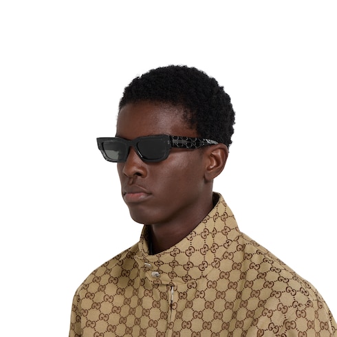 - Rahmen aus glänzendem, transparent-dunkelgrauem Azetat mit durchgehendem GG Motiv