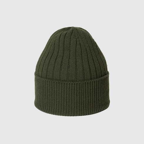 Die Accessoires aus weichen Stoffen und Seide aus der Kollektion hauchen bekannten Codes des Hauses durch raffinierte Besätze, Logo-Patches und dezente Stickereien neues Leben ein. So wird diese Mütze aus Wolle von einem Gucci Etikett aus Leder geziert.