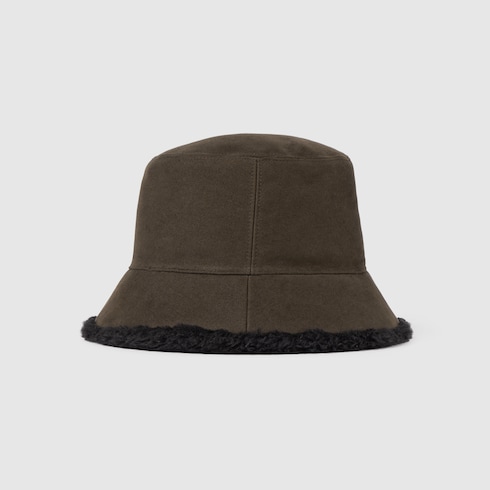 Ein Design aus Baumwolle und Shearling mit kontrastierendem Besatz aus flauschigem Stoff verleiht diesem Fischerhut aus der Herbst Winter 2025 Kollektion sein besonderes Flair.