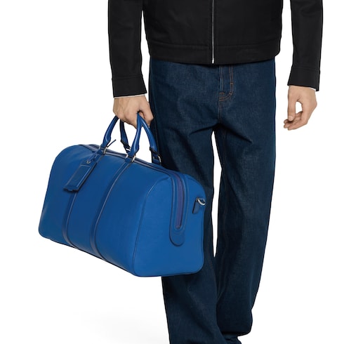 Der Name Gucci Edge verleiht dem dynamischen Charakter geradliniger Silhouetten Ausdruck, die innovative Materialien mit Flexibilität, Leichtigkeit und dem dezenten Logo-Flair des GG Monogramms vereinen. Diese mittelgroße Reisetasche aus mattem, gummiertem GG Stoff wird von einem abnehmbaren Namensschild-Anhänger aus Leder mit Liftboy komplettiert.