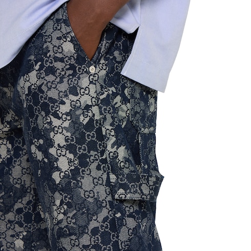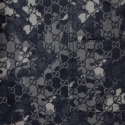 - Dunkelblauer und elfenbeinfarbener GG Denim-Jacquard mit Marmor-Effekt