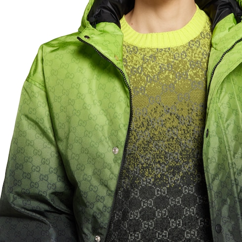 - GG Jacquard aus Wolle und Kaschmir mit Farbverlauf von Limettengrün zu Schwarz