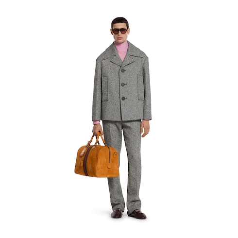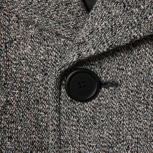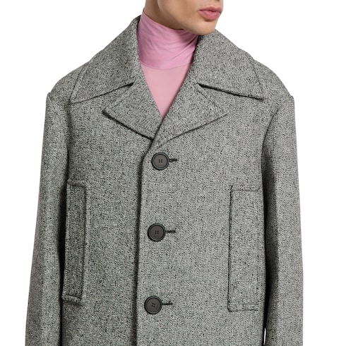 Diese einreihige Cabanjacke aus der Herbst Winter 2025 Kollektion kombiniert ein klassisches fallendes Revers mit Hornknöpfen. Zwei Taschen auf der Vorderseite runden das gefütterte Design ab.