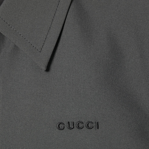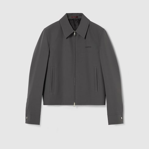 In der Herbst Winter 2025 Kollektion trifft Schneiderkunst auf unerwartete Leichtigkeit. Diese kurze Jacke kombiniert ein elegantes Design im College-Stil mit einer farblich abgestimmten Gucci Stickerei auf der Vorderseite.