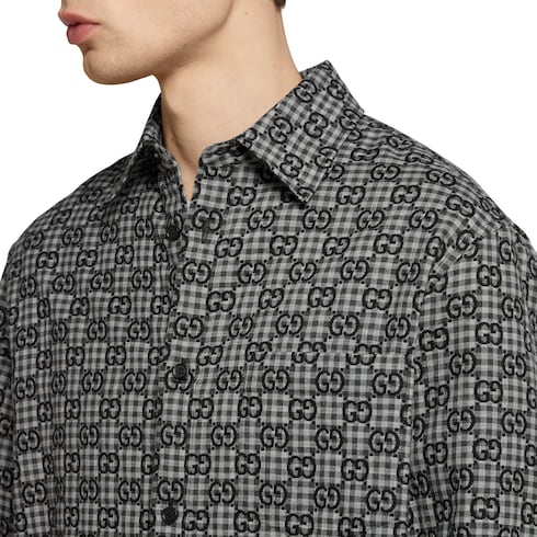 Hemd aus Baumwoll- und Wolljacquard mit GG Vichykaro