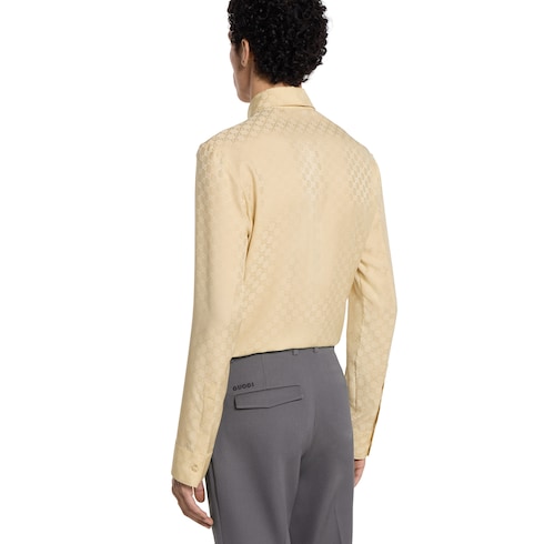 In der Herbst Winter 2025 Kollektion, dieses Hemd zeichnet sich durch eine eng anliegende Silhouette aus, die den Körper betont. Ein Kentkragen, lange Ärmel und ein verdeckter Knopfverschluss sorgen für ein elegantes Finish.
