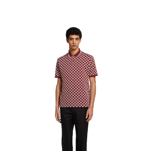Ausgewählte Ready-To-Wear-Designs werden mit traditionsreichen Details des Hauses präsentiert. Dieses Poloshirt mit normaler Passform ist aus GG Stretch-Baumwoll-Piqué-Jacquard in Gucci Rosso Ancora Rot und Weiß gefertigt.