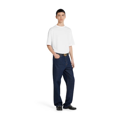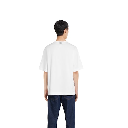 In der Pre-Fall 2025 Kollektion treffen vielfältige Strukturen auf raffinierte Details. Dieses T-Shirt mit übergroßer Passform besteht aus weißem Baumwolljersey und wird von einem Schlaufendetail mit Web geziert.