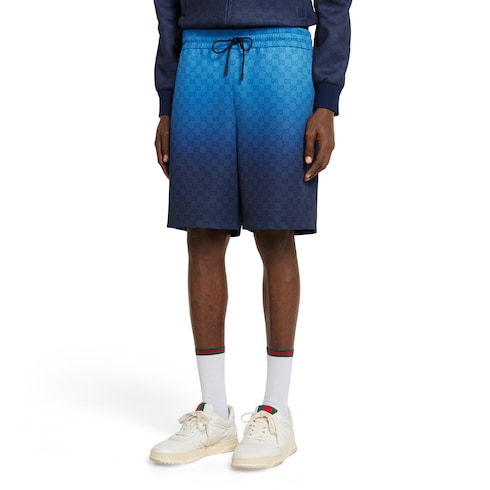 Präzise gestaltete Farbverläufe lassen die Struktur der verwendeten Materialien und des unverkennbaren GG Motivs in den Vordergrund treten. Diese Shorts aus leichtem Neopren sind in einem Farbverlaufdesign von Blau zu Dunkelblau gehalten und mit einem Print in Dégradé-Optik versehen.