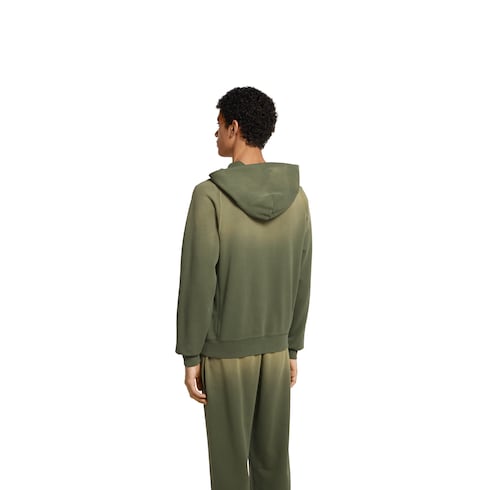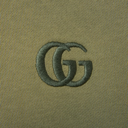 Die Pre-Fall 2025 Kollektion umfasst Designs in gedeckten Schwarz-, Grau- und Grüntönen, auf denen zarte Blumen-Stickereien, geprägte Logos und andere aufwendig gearbeitete Details auf besondere Weise in den Fokus rücken. Dieses Sweatshirt aus waldgrünem Baumwolljersey ist mit einer Doppel G Stickerei versehen.