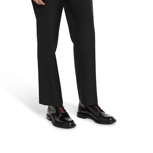 Diese Herrenstiefelette ist aus glänzendem, schwarzem Leder gefertigt – ein Material, das die elegante Silhouette auf besondere Weise betont. Als unverkennbares Symbol des Hauses verleiht das grüne und rote Web dem Design ein dezentes Logo-Flair.