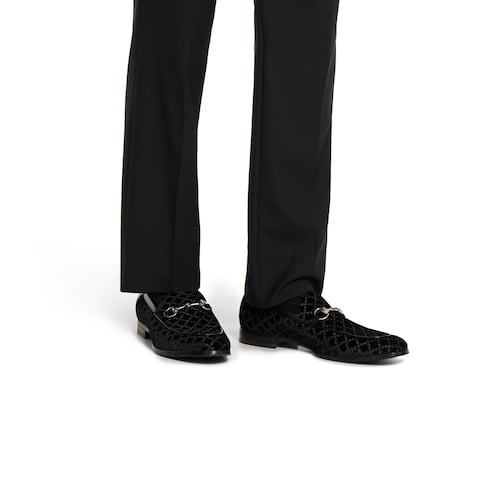 Dieser Herrenloafer verbindet klassisches Design mit zeitgemäßen Facetten und präsentiert das berühmte Horsebit-Schmuckteil – ein charakteristisches Symbol für das Reitsporterbe von Gucci – in einer silberfarbenen Variante. Das Karomuster verleiht dem Design eine edle Struktur und verankert die zeitlose Silhouette in der Gegenwart.