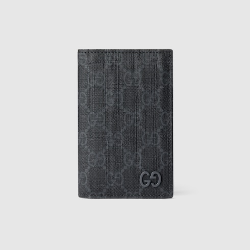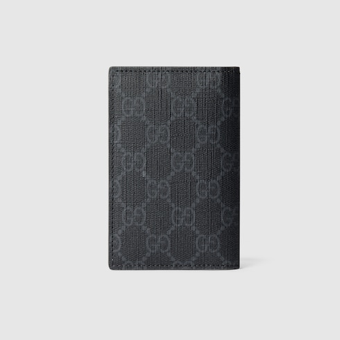 Im Rahmen der aktuellen Kollektionen zeichnen sich Kleinlederwaren durch schmale, kompakte Formen, neue Farben und das unverkennbare GG Logo in einem zweifarbigen Design aus. Dieses längliche Kartenetui mit acht Kartenfächern ist aus schwarzem GG Supreme-Canvas gefertigt und wird von einer Innenseite aus grauem Glattleder ergänzt.