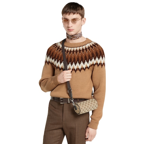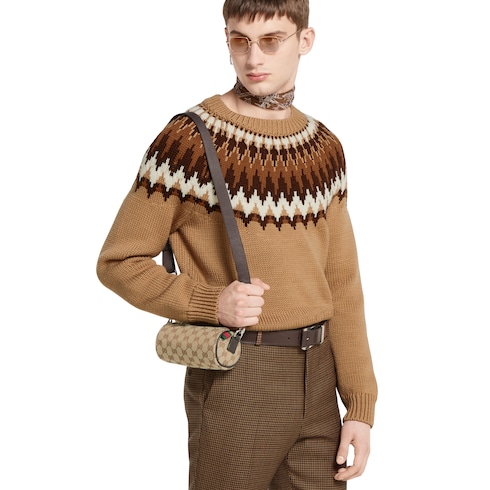 Der GG Canvas zollt dem unverkennbaren Monogramm von Guccio Gucci, dem Gründer des Hauses, Tribut. Hier wird er durch ein grünes und rotes Web-Detail sowie einen braunen Lederbesatz ergänzt, was dieses Accessoire zu einem stilvollen Begleiter für den Alltag macht.