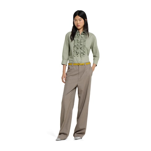 Das von den Archiven inspirierte runde GG Logo findet sich nach wie vor auf ausgewählten Lederaccessoires wieder. Hier ziert das in den 1970ern entstandene Motiv einen schmalen Gürtel aus Glattleder.