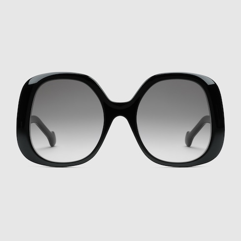 Diese übergroße Sonnenbrille ist mit wellenförmigen Bügeln versehen, die fließende Übergänge schaffen. Abgerundet wird das schwarz gespritzte Modell durch ein goldfarbenes GG Motiv.