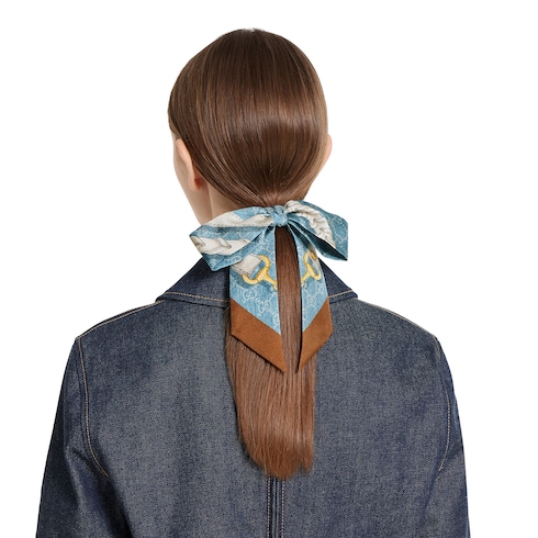 In eleganten Farben inszenierte Horsebit-Details und Reiter-Motive lassen die Verbindung des Hauses zur Welt des Pferdesports aufleben. Dieser Scrunchie aus Seidentwill verfügt über einen durchgehenden Reitsport-Print mit Horsebit-Motiv.
