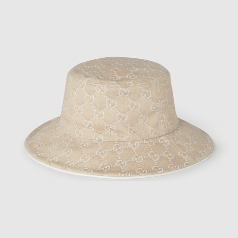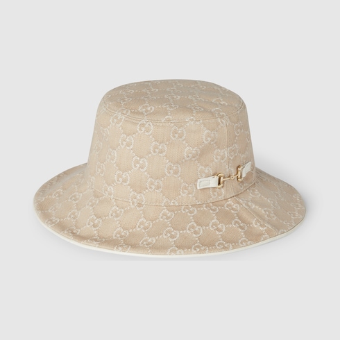 Durch das Spiel mit Waschungen, kontrastierenden Farben und Trompe-l’œil-Prints auf Accessoires aus Seide und anderen Textilien lotet das Haus die Möglichkeiten des GG Denim-Stoffs im Rahmen der Pre-Fall 2025 Kollektion neu aus. Dieser Fischerhut aus GG Denim wird von einem Horsebit-Detail akzentuiert.