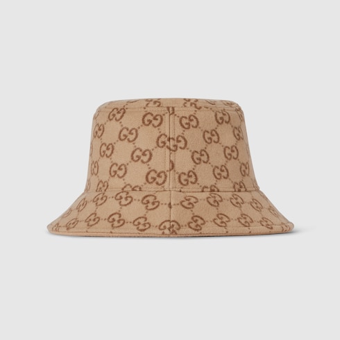 Die Accessoires aus weichen Stoffen und Seide aus der Pre-Fall 2025 Kollektion hauchen bekannten Codes des Hauses durch raffinierte Besätze, Logo-Patches und dezente Stickereien neues Leben ein. Dieser Fischerhut aus GG Wolle wird von einem Doppel G Detail akzentuiert.